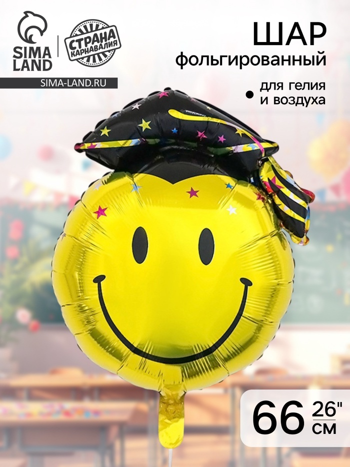 Яркий акцент для самого важного праздника. Позитивный смайл в академической шапочке станет идеальным завершением оформления выпускного вечера или памятной фотосессии.