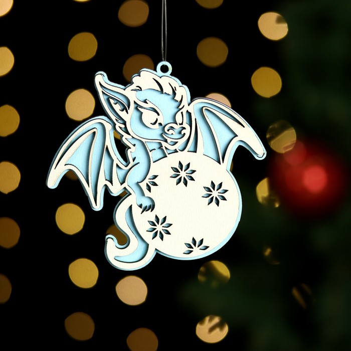 Ёлочная игрушка "Дракоша", дерево, двухслойный, голубой