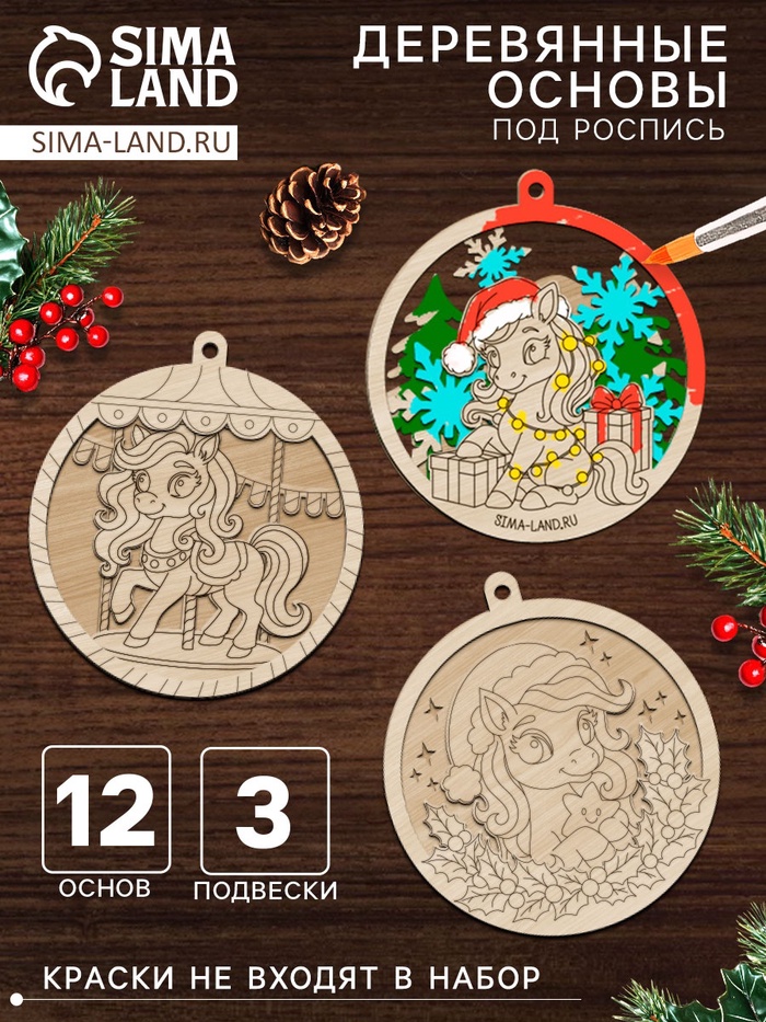 С набором для росписи по дереву у вас получится смастерить 3 новогодние подвески и украсить ими праздничную ёлочку или интерьер.