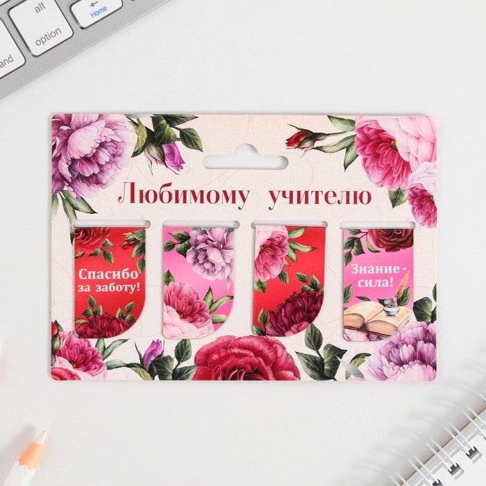 Набор магнитных закладок 4 штуки на подложке «Любимому учителю»
