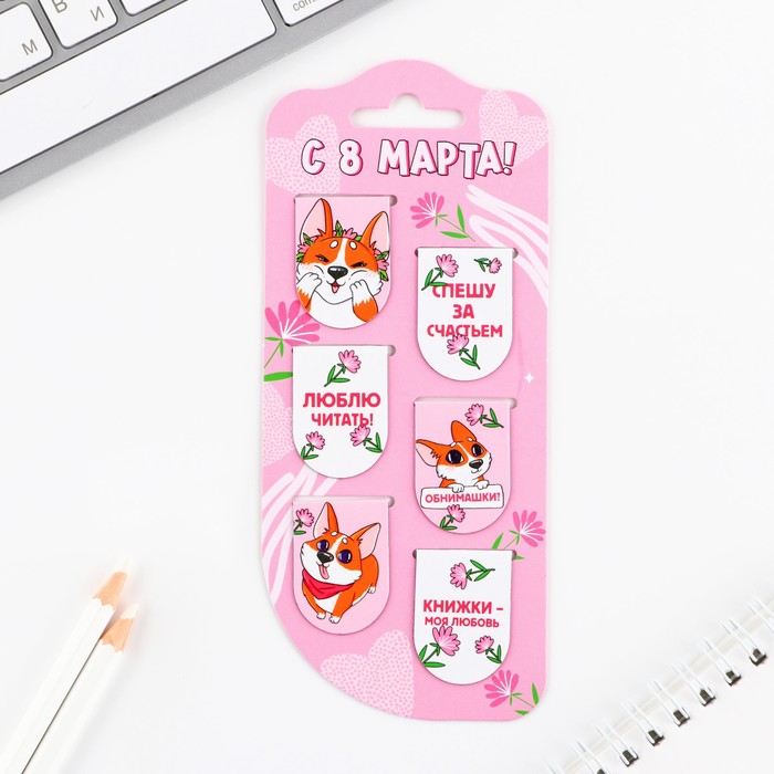 Закладки магнитные, 6 шт «Корги. 8 марта»