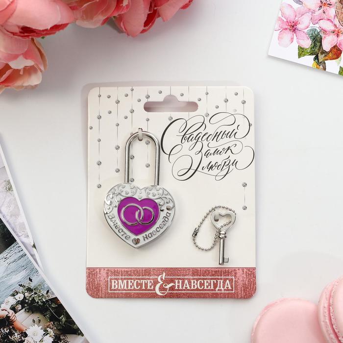 Замок для торжественной свадебной традиции - это символ любви. Навесной замок любви на свадьбе становится символом нерушимого союза, заключенного влюбленными в этот день. По традиции замок вешается на мост, загадывается желание о счастливой семейной жизни, а ключи от него выбрасываются в реку, через левое плечо. Это делается для того, чтобы никто никогда не смог открыть этот замок и нарушить клятву, данную влюбленными. Свадебный замок можно повесить на мост по традиции или на дерево в специалных парках или аллеях молодожен, которые есть во многих городах. Замок навесной свадебный имеет в комплекте ключик, замок закрывается и открывается. Традиция закрывать замок на свадьбу объединяет сердца мужа и жены навсегда. Свадебный декоративный замочек будет отлично смотреться на фотосессии и видео.