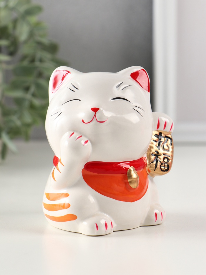 Этот керамический кот-копилка станет символом процветания и тёплым подарком для близких. Фигурка с поднятой лапкой традиционно привлекает в дом удачу и финансовый поток, а открытый дизайн делает накопления простым и приятным ритуалом.