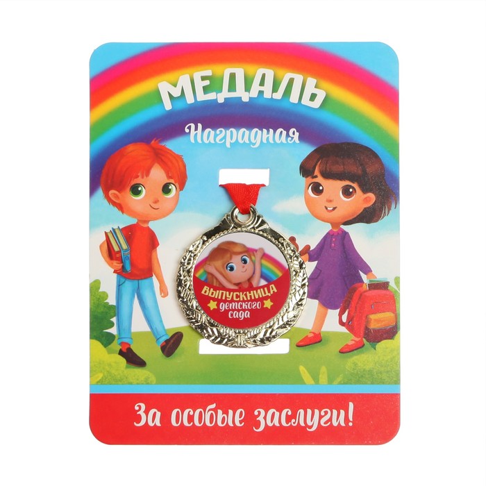 Медаль детская на Выпускной «Выпускница детского сада», на ленте, золото, металл, d = 4 см